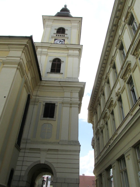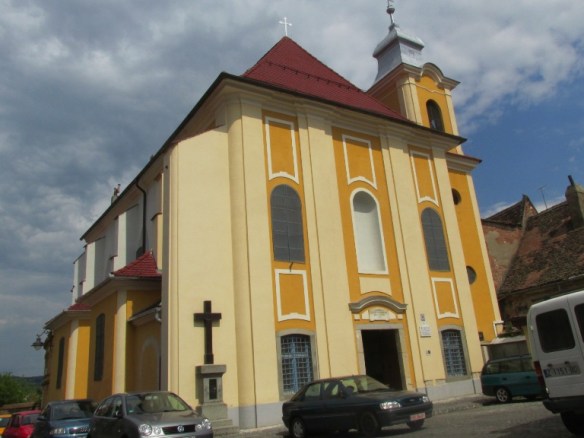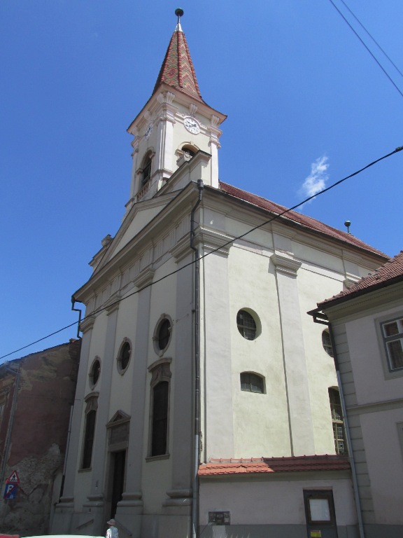 Revenind spre centrul vechi am urcat pe lângă Biserica Ursulinelor. Pe acel loc, situat în afara zidurilor cetății, în secolul XIII călugării dominicani au ridicat o mânăstire care a fost incendiată în invazia mongolă (1241). Refăcută, a fost din nou distrusă de năvălirea turcilor (1432) astfel au construit o biserică nouă, cea actuală, în interiorul zidurilor cetății (1479). După Reforma Protestantă a intrat în posesia luteranilor (1543). Când Transilvania a devenit parte din Imperiul Habsburgic biserica a fost preluată de călugărițele ursuline care au refăcut-o în stil baroc (1728-1733) și pe locul fostei mânăstiri dominicane au deschis o școală de fete, ulterior Colegiul Pedagogic. Biserica a fost restaurată în 1969.