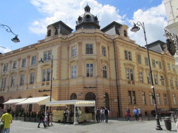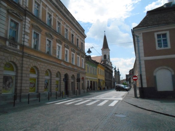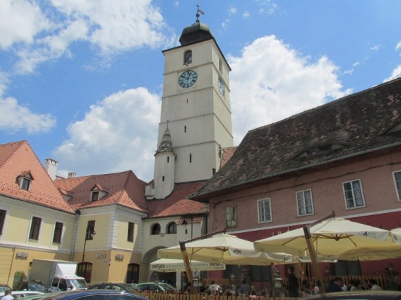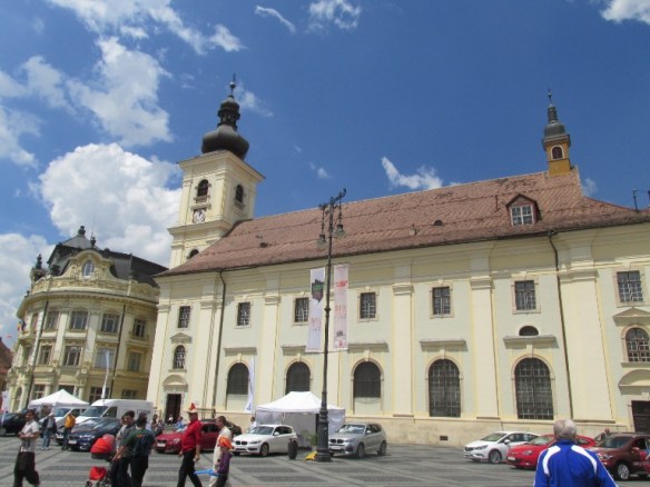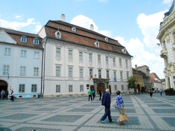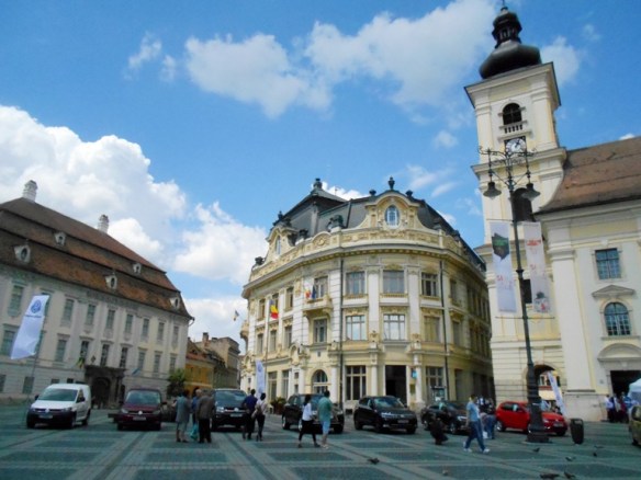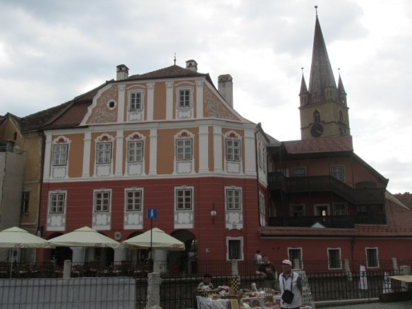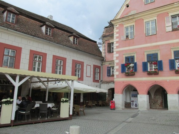 Într-o direcție se afla Piața Mare, pe care o vizitasem, așa că am pornit în sens opus spre Piața Unirii printre clădirile ridicate în secolele XVIII și XIX, unele în stil baroc, altele în stil eclectic. Majoritatea magazinelor din centrul Sibiului, sediile unor bănci, agenții de turism, etc. se aflau la parterul lor și în față se întindeau terase după terase.
