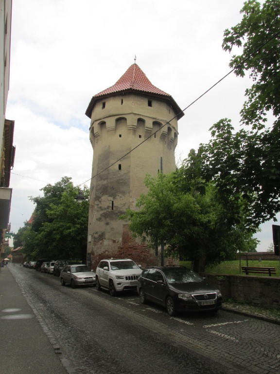 Am urmat strada Cetății, despărțită de Parcului Cetății printr-un zid ce a făcut parte din al treilea rând de fortificații. În acea perioadă (1357-1366) unele dintre cele 19 bresle de meșteșugari au ridicat turnuri de apărare ale cetății. Primul pe care l-am văzut a fost Turnul Archebuzierilor denumit după găurile aflate la nivelul meterezelor prin care se putea trage cu archebuza, numele schimbat ulterior în Turnul Postăvarilor sau Turnul Pânzarilor. În decursul timpului a fost supraînălțat și modificat.
