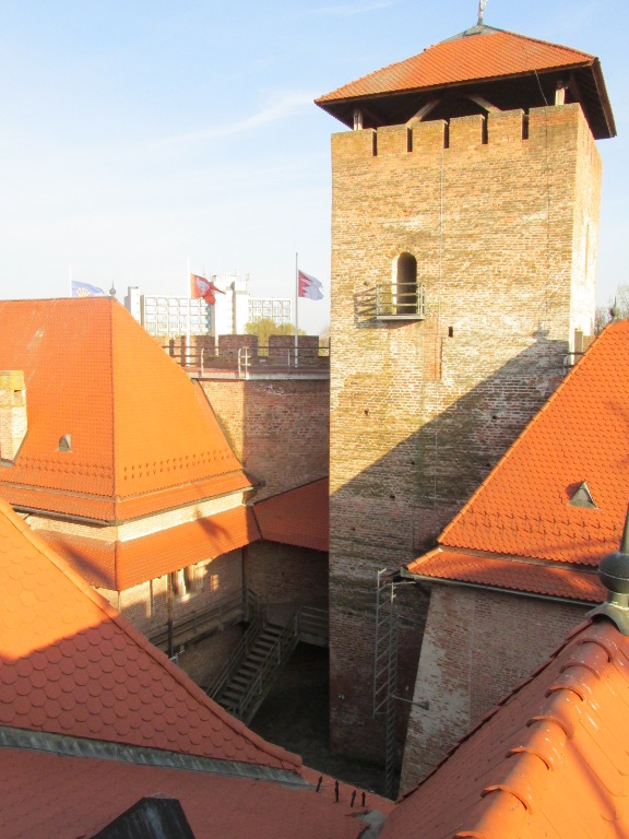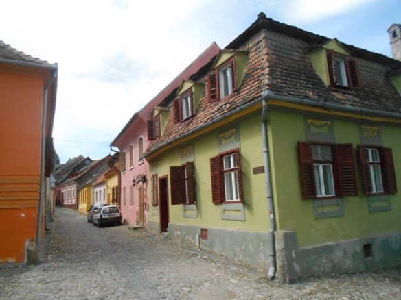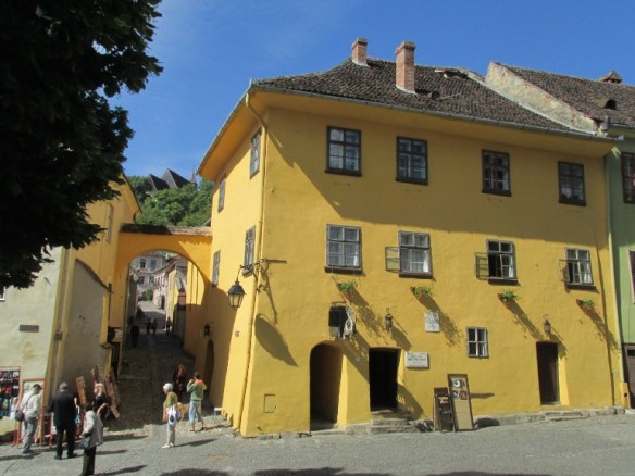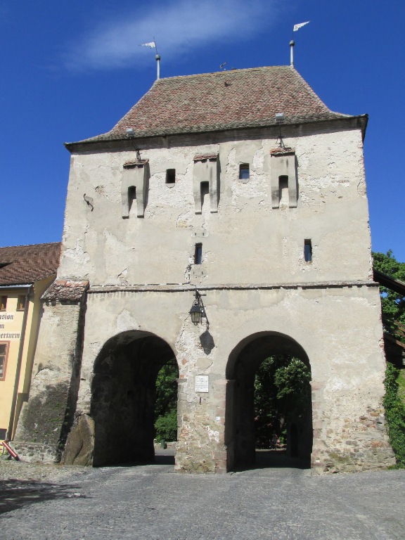 Cetatea medievală a fost ridicată în secolul XII de coloniștii sași pe malul sudic al râului Târnava Mare, pe două terase: Dealul Cetății și Dealul Școlii și înconjurată de un zid de 4 metri înălțime. În secolele XIV și XVI, meșteșugarii care s-au stabilit în partea de jos a cetății au înălțat zidul și l-au prevăzut prevăzut cu 14 turnuri, fiecare purtând numele breslei de meșteșugari care l-a ridicat. Dintre ele 9 au supraviețuit până azi. În fața primului turn pe care l-am văzut, Turnul cu ceas, se afla Casa de Cultură Sighișoara pe care am străbătut-o pe sub o arcadă.