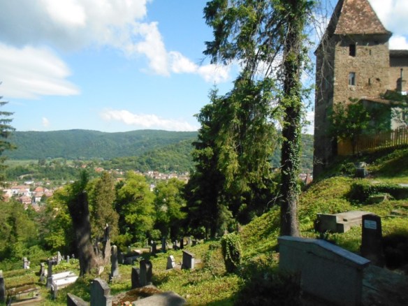 Lângă biserică, pe deal se întindea cimitirul evanghelic cu pietrele funerare înconjurate de verdeață. Era străbătut de alei cu bănci pe care te puteai reculege.