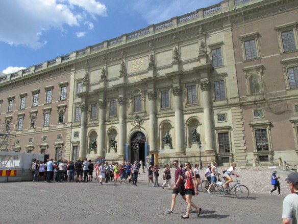 În față, paralel cu o parte din insulă se întindea Palatul Regal (Kungliga Slottet), o clădire în stil baroc în care se aflau apartamentele regale și pentru oaspeți cuprinzând 600 de camere, birourile regelui și personalului format din aproximativ 200 de persoane, săli de festivități, Capela regală, Tezaurul Regal, o bibliotecă și mai multe muzee. A fost construit în locul Castelului Tre Kronor (secolul XIII) distrus într-un incendiu (1697), într-o perioadă mai lungă de timp, construcția stagnând în timpul Marelui Război din Nord. Clădirea a fost finalizată în anul 1754. Din 2011 a început o renovare preconizată să dureze aproximativ 20-22 de ani.