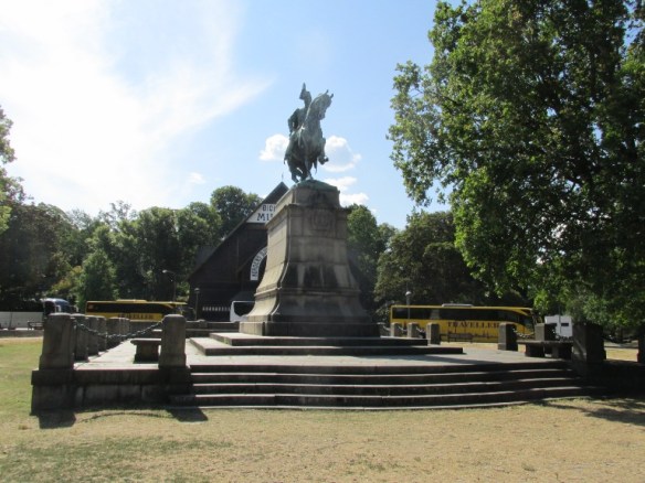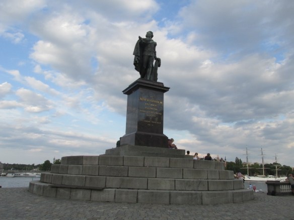 Pe malul apei, într-un spațiu larg, se afla statuia Regelui Gustav III.