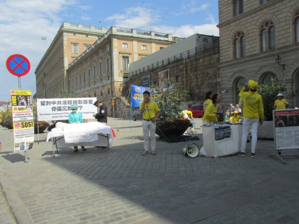 La capătul podului am intrat în piața Mynttorget. Piața a luat numele de la Monetăria Regală (Kungliga Myntet) care era situată în zonă (1696-1850). Fiind aproape de Parlament, în piață au loc frecvent diverse manifestații și proteste, unul dintre ele era în plină desfășurare.