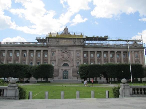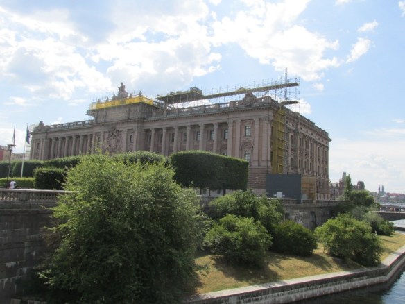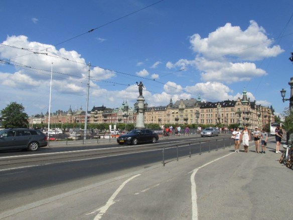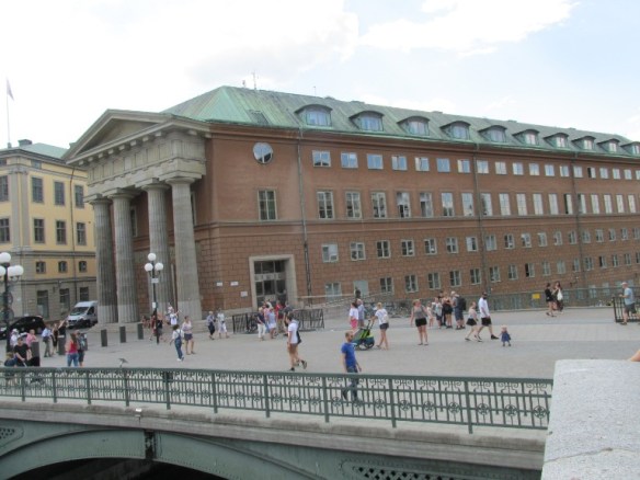 De lângă Operă, din Piața Gustav Adolf am trecut podul Norrbro, unul dintre primele poduri din piatră ale orașului, construit cu trei arcade (1795, 1906) pentru a facilita accesul la Palatul Regal situat în orașul vechi, Gamla Stan, podul trecând peste insula Parlamentului (Helgeandsholmen) pe care între secolele XIII-XIV a funcționat un ospiciu.