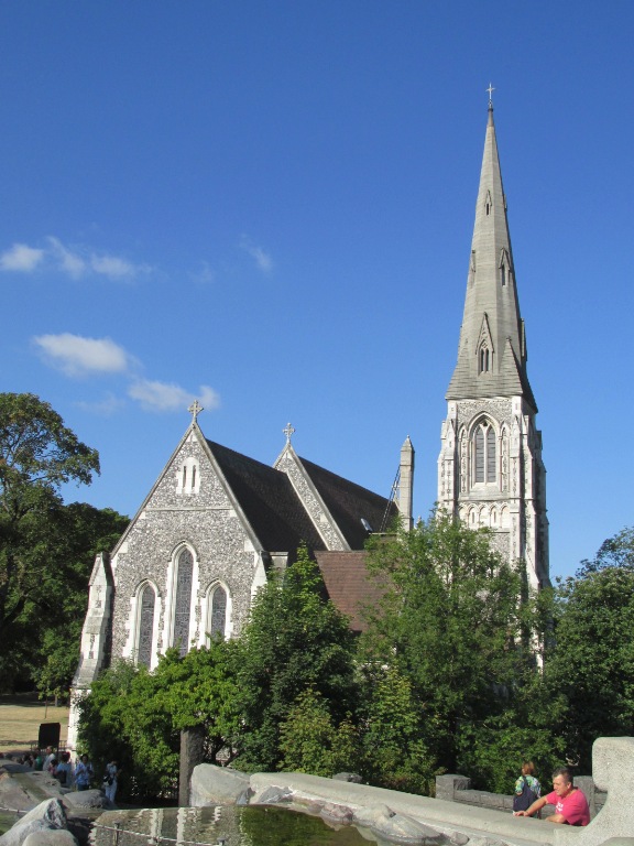 Cu ajutorul primit din partea prințesei daneză Alexandra și cu permisiunea Ministerului de Război între anii 1885-1887  în apropiere de Kastellet a fost construită biserica în stil gotic timpuriu englez (Lancet Gothic), cu un turn prevăzut cu 8 clopote tubulare.  Cu ajutorul Prințului de Wales în anul 2013 au fost adăugate șapte clopote și azi toate cele 15 funcționează manevrate prin calculator.