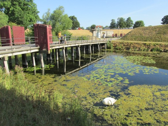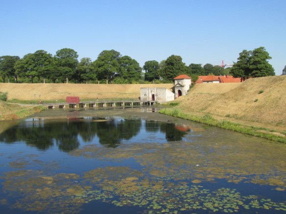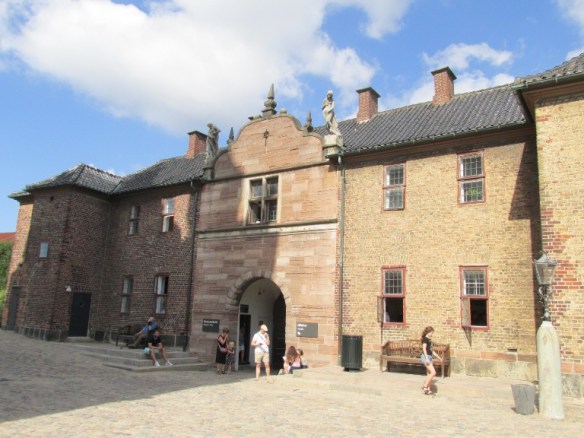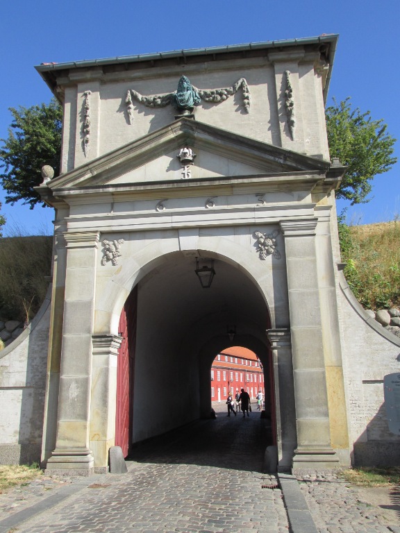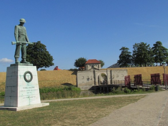 Până la intrare aveam de trecut două poduri peste șanțurile cu apă înconjurătoare. Pe porțiunea dintre ele am văzut statuia Căderea Noastră (Vore Faldne), un memorial pentru soldații danezi care au făcut parte din Forțele Aliate.