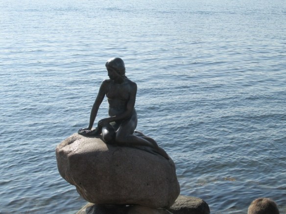Primul obiectiv vizitat, simbol al orașului, a fost Mica Sirenă (Den lille Havfrue). O statuie din bronz de 175 kg, cu înălțimea de 1,25 metri, situată pe o stâncă la malul apei pe Promenada Langelinie (1913), reprezenta transformarea sirenei în om. Inspirată din basmul lui Hans Christian Andersen a devenit foarte cunoscută, copiată în aproximativ 13 exemplare și postate în diferite locații din lume.