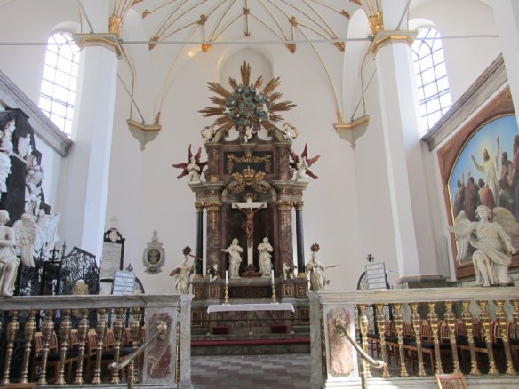Am ieșit din piață și m-am îndreptat spre piața Gammeltorv. Mi-am făcut traseul pe lângă Turnul Rotund și Biserica Sfânta Treime din Complexul Trinitatis apoi Catedrala din Copenhaga, pe care le-am vizitat. De la Turnul Rotund am ocolit puțin pentru a vedea Marea Sinagogă (Københavns Synagoge) construită în stil clasic cu elemente orientale (1830-1833). Tristețe mare pentru mine ca turist, clădirea era în curs de reconstrucție.