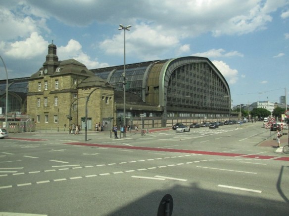 Îndreptându-mă spre centrul orașului am trecut pe lângă Gara Hamburg (Hamburger Hauptbahnhof), situată în apropierea Portului și a Primăriei, una dintre cele mai frecventate gări din Europa. Clădirea gării a fost construită de forma unei cupole cu două turnuri laterale de 45 metri înălțime (1902). Pistele subterane au urmat traiectoria vechilor fortificații. Clădirea a fost grav avariată în cel de Al Doilea Război Mondial, reparată (1948) și renovată complet (anii 1970).