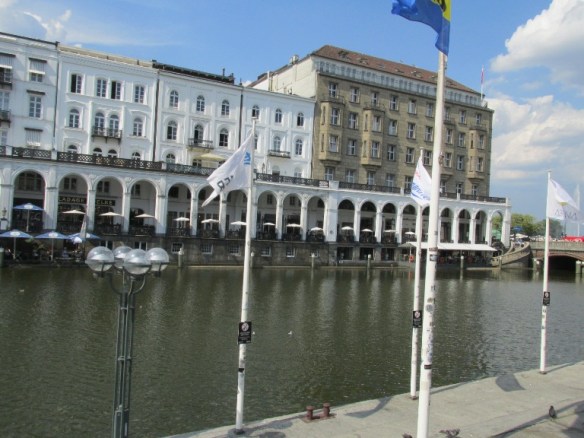 Am parcat în zona Primăriei lângă un canal al râului Alster unde se afla Alsterarkaden. După ce fosta clădire a Primăriei a fost distrusă într-un mare incendiu (1842), s-a început construirea actualei clădiri. Pentru a se crea piața din fața ei a fost proiectat canalul care a fost mărginit de clădiri. Pe malul său vestic clădirile au fost unite cu o arcadă în stil italian (1843), Alsterarkade.