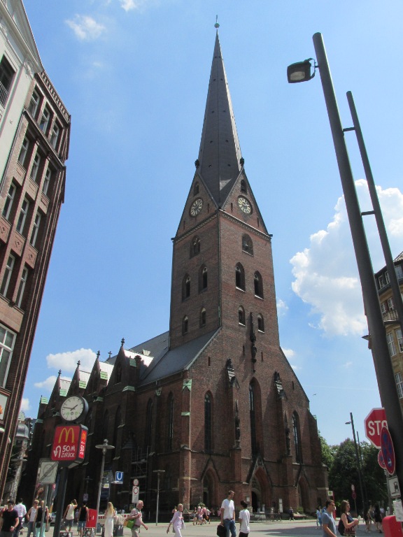 M-am îndreptat spre cea mai veche biserică din centrul orașului, aflată pe punctul cel mai înalt al orașului unde s-a aflat cea mai veche așezare, Biserica „Sf. Peter” (Hauptkirche St. Petri), de rit protestant. În acel loc s-a aflat o biserică de lemn menționată prima dat ca biserică de piață în anul 1195.