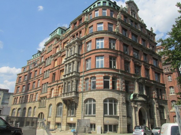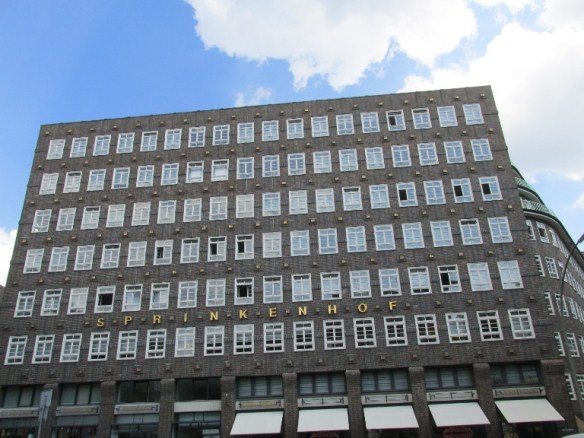 De la biserică am trecut prin Burchardtplatz, piață mărginită de clădiri în stil expresionist (secolul XIX). Pe o latură a pieței, întinzându-se pe trei străzi, cu trei curți interioare și o parcare subterană, se afla Sprinkenhof, o clădire monumentală construită în 1925 de două companii de construcții fuzionate care a fost ocupată cel mai mare complex de birouri din Hamburg, magazine și spații de locuit. A fost decorată cu decorată cu patru statui mari din gresie din care doar două au supraviețuit bombardamentului din 1943. A intrat în proprietatea orașului Hamburg și a primit numele actual. Din 1950 toate proprietățile închiriate comercial au fost transferate spre administrare firmei Sprinkenhof AG. Clădirea a fost renovată între anii 1999-2002.