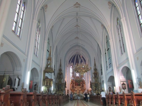 Capela a fost înlocuită cu o biserică (1255) și după ce s-au construit zidurile de fortificație a fost inclusă în oraș (1260). Un secol mai târziu în locul ei a fost ridicată o biserică în stil gotic care a fost extinsă, i s-a adăugat un turn pe care spre sfârșitul secolului a fost așezată o turlă în stil gotic târziu (1587-1589).
