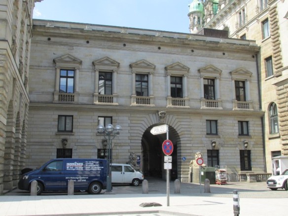 O clădire mai scundă găzduia Poliția Statală (Polizeiwache Rathaus).