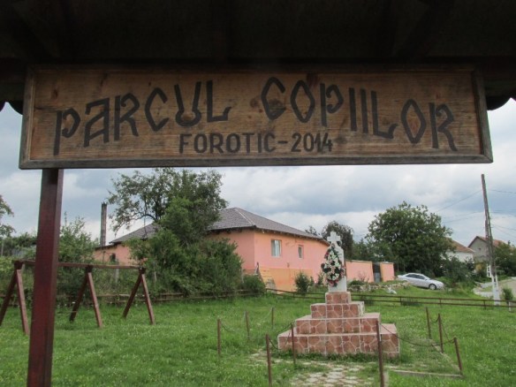 Am parcat lângă un spațiu înconjurat de gard în care central era postat un monument, ciudat numit pe o placă postată la intrare, Parcul Copiilor.
