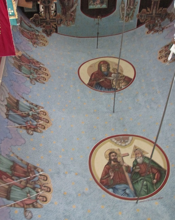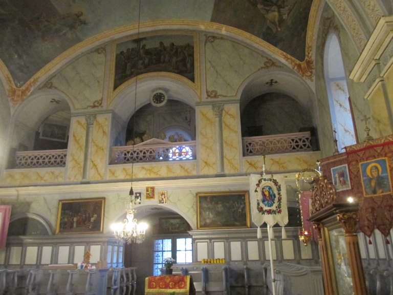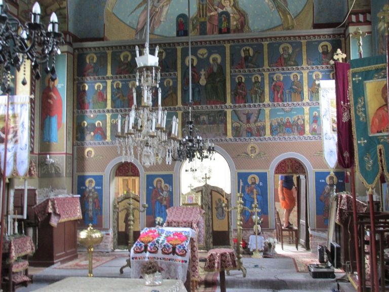 Interiorul ei a fost pictat în anul 1900. În decursul timpului a fost refăcută de mai multe ori. În timpul cutremurului din 1940 turla cea mare s-a prăbușit și nu a mai fost reconstruită.