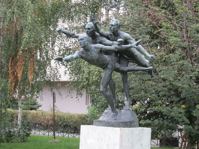 Într-o mică zonă verde am văzut statuia Alergătorii care prezintă 3 atleți ajunși aproape de linia de terminare a cursei, cu mâinile întinse pentru a o trece și a deveni câștigători. Statuia este o copie (1913) a celei originale sculptată de Alfred Boucher în perioada în care arheologii germani au descoperit în Grecia locul unde se desfășurau Jocurile Olimpice antice. Inițial a fost postată în fața Ateneului Român apoi în 1950 a fost mutată pe Calea Victoriei.