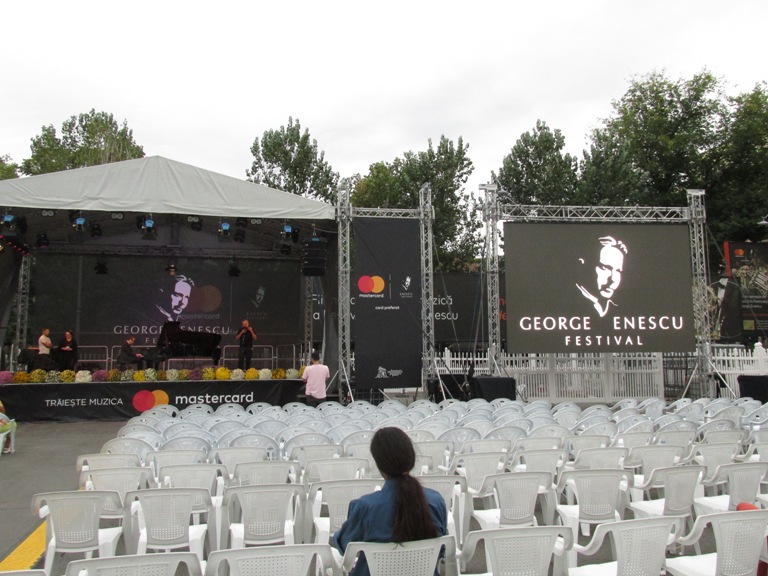 În momentul plimbării mele, vis a vis de Muzeul Național de Artă era amenajat un spațiu pentru desfășurarea în aer liber a Festivalului „George Enescu”. Diverși artiști exersau, înainte de a performa, așa că m-am așezat și am ascultat câteva melodii.