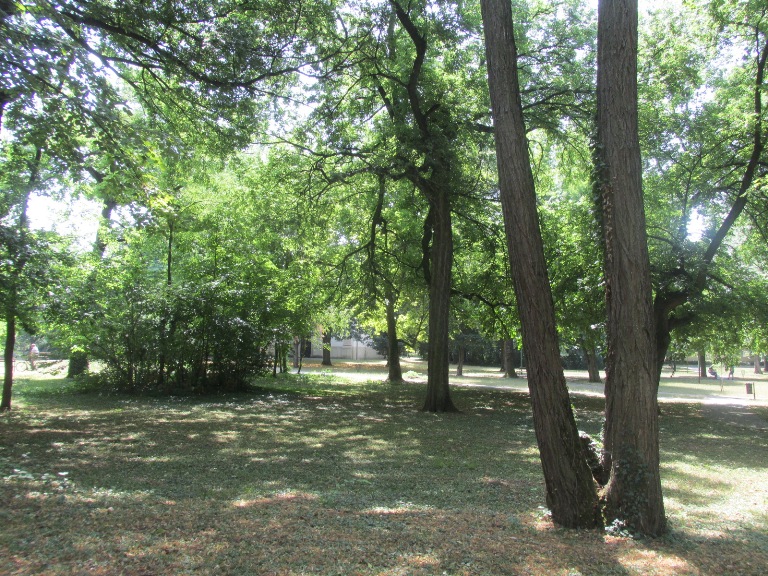 Lângă castel era amenajată o grădină engleză. Complexul era înconjurat de un parc, întins pe 15 hectare, cu specii rare de copaci, în care erau amenajate 3 lacuri, pe care pluteau lebede, insule pe care creșteau plante exotice, „grote” artificiale, fântâni și sculpturi.