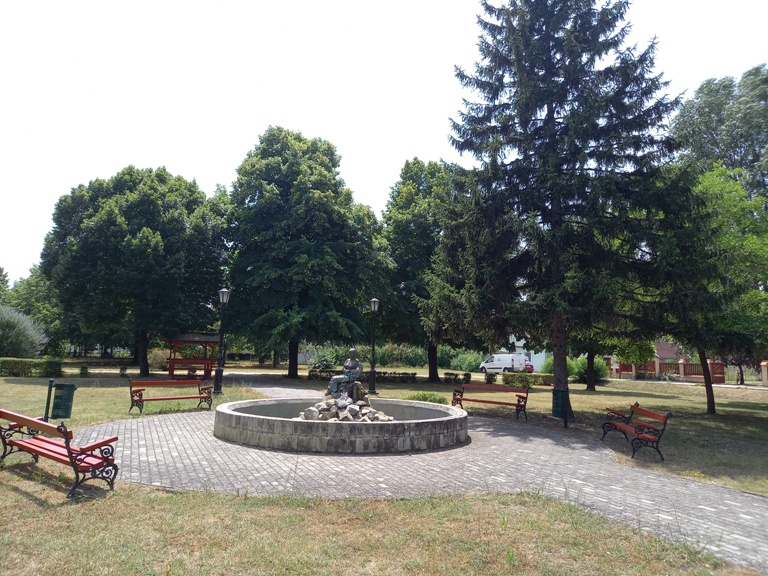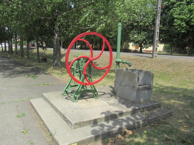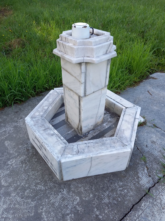 În apropierea bisericii se află o fântână amenajată pe un zid. În jurul ei au fost postate vechile steme ale Reghinului. Pe cea din stânga sunt reprezentate un scut, în dreapta lui o floare de crin, în stânga o stea cu 6 colțuri și pe diagonală o bandă inscripționată O.P.R (Oppidum Privilegiatum Regun, adică Târgul Privilegiat Regun). Stema situată deasupra fântânii, cea din 1848, prezintă un crainic înarmat, ținând în gură un corn și stema din dreapta, din 1923, prezintă un scut, o coroană cu 3 turnuri și un plutaș pe râul Mureș.