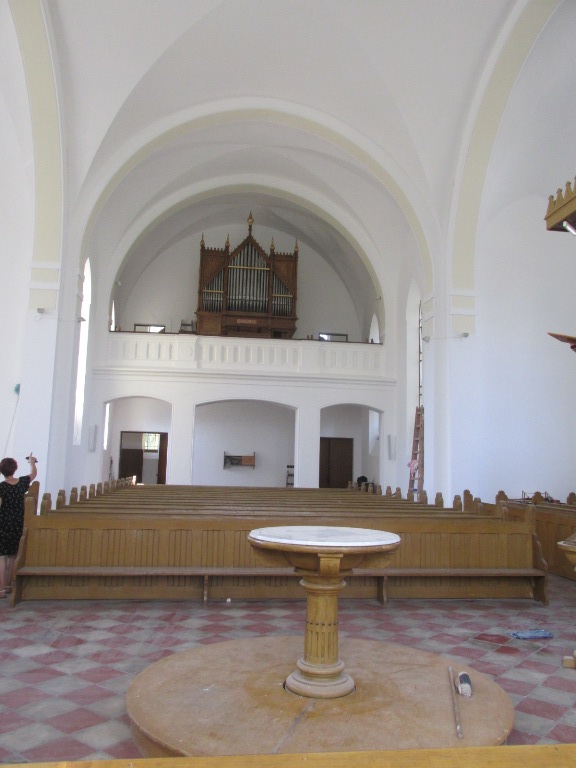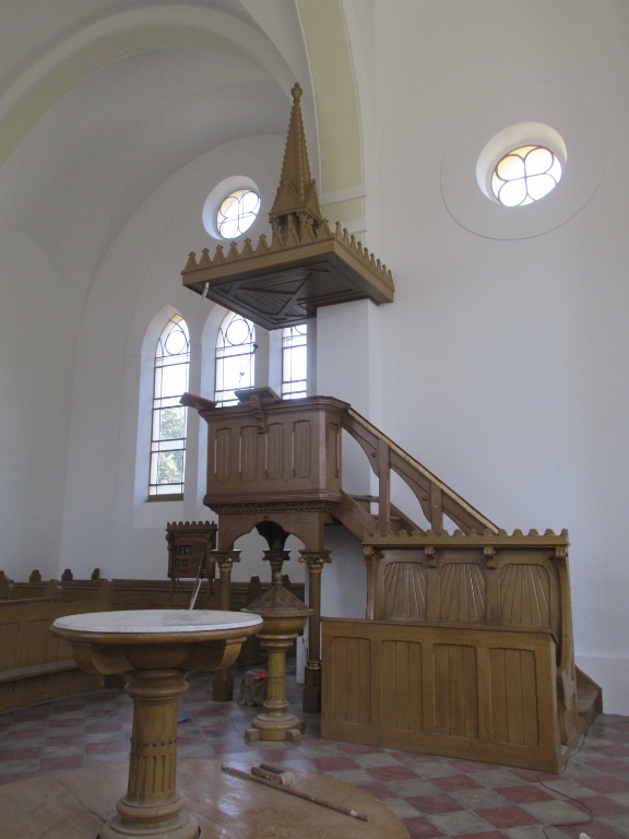 Interiorul a fost pictat în ulei, pe gel aplicat pe bârnele de lemn. Datorită intemperiilor și a reparațiilor efectuate în decursul timpului pictura s-a distrus aproape total. Ultima reparație și restaurare au avut loc în anul 1983.