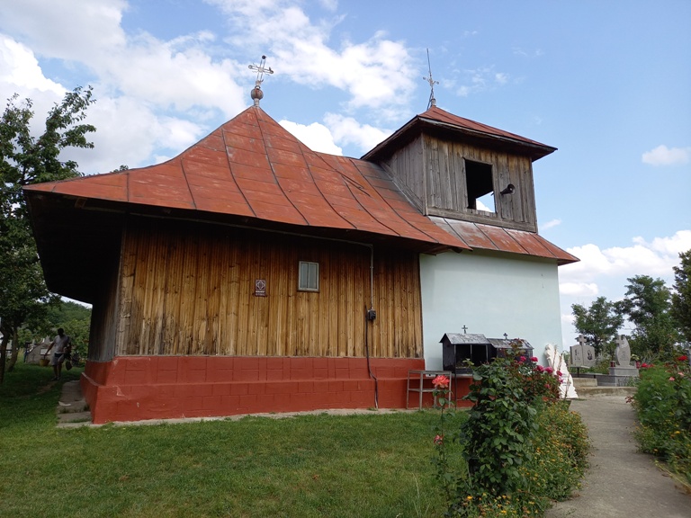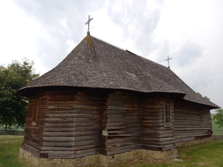 Biserica a fost construită din lemn și tencuită.