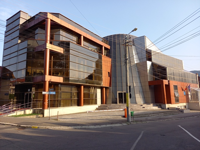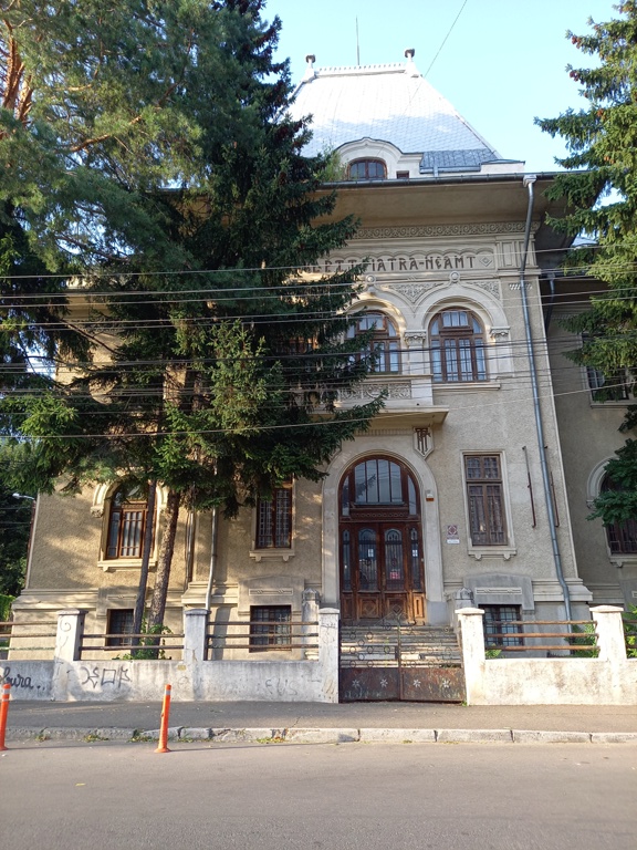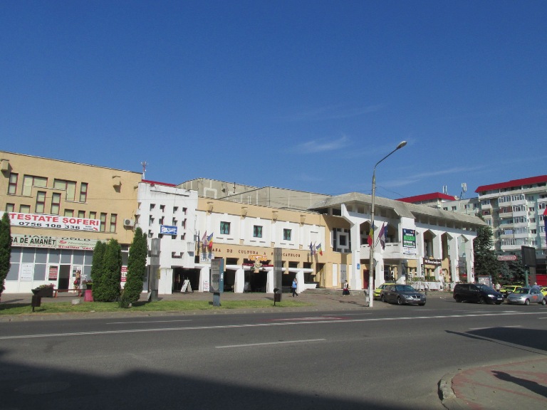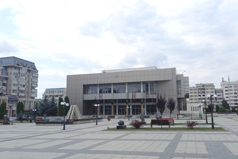 În stânga teatrului se află Prefectura Piatra Neamț.