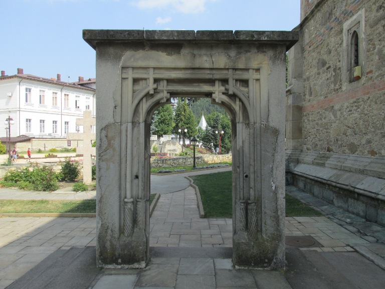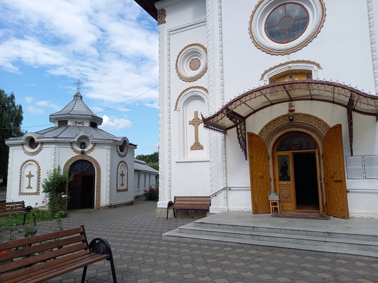 Ieșind în curtea mânăstirii, în față mi-a apărut un șir de bănci deasupra cărora trona biserica.