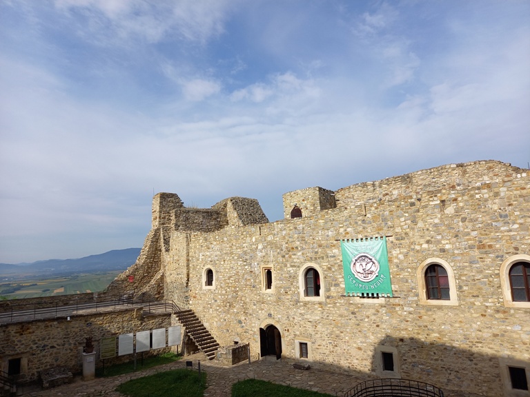 Drumul spre cetate, situată pe stânca Timuș, de pe Culmea Pleșului, la o altitudine de 480 metri, pornea din fața pensiunii. Aveam de urcat mai puțin de 1 kilometru.
