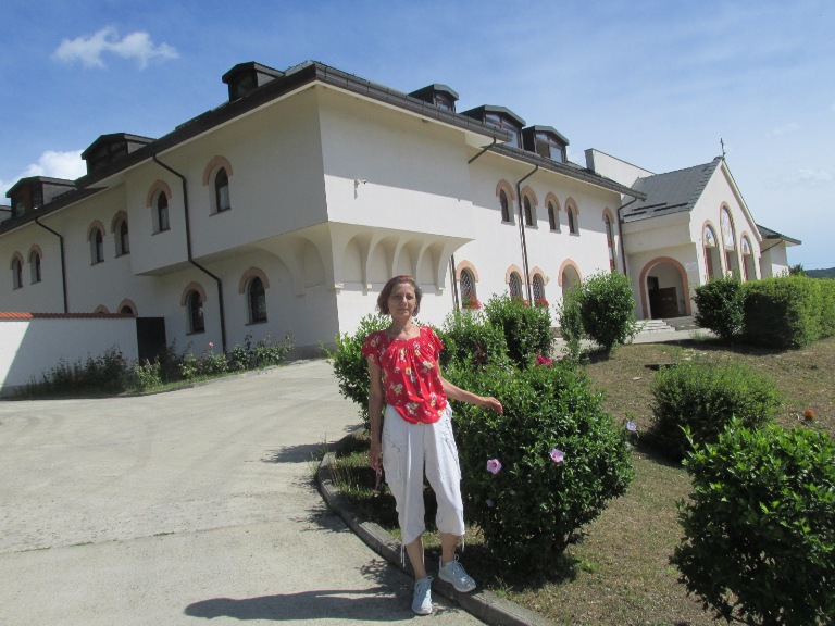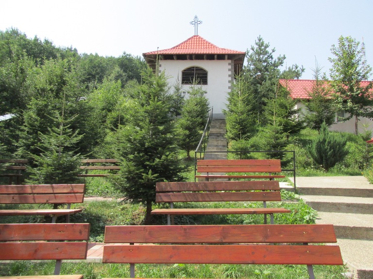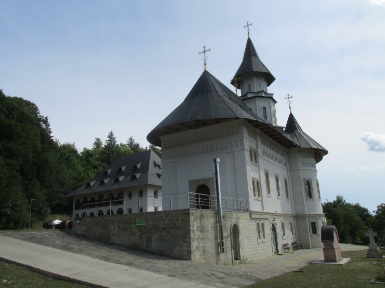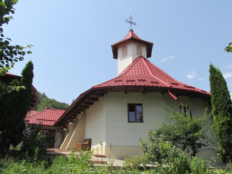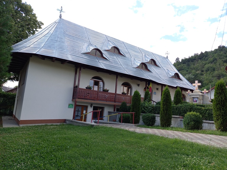 După 25 kilometri am parcat în dreptul unei pensiuni și, pe un drum lăturalnic, după câteva sute de metri, am ajuns la Mânăstirea „Sf. Cuv. Teodora” Codrii Pașcanilor.