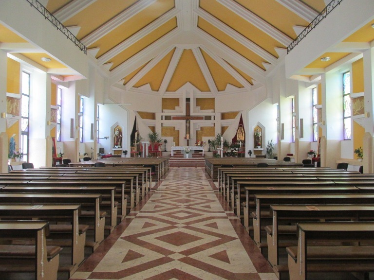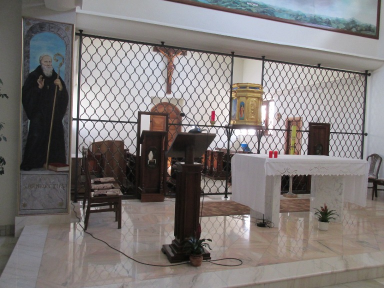 Interiorul bisericii este foarte simplu și sobru. A fost decorat doar la intrarea în altar. Central a fost pictată Maica Unității și pe laterale fondatorii Ordinului, Sf. Benedict și Sf. Scolastica.