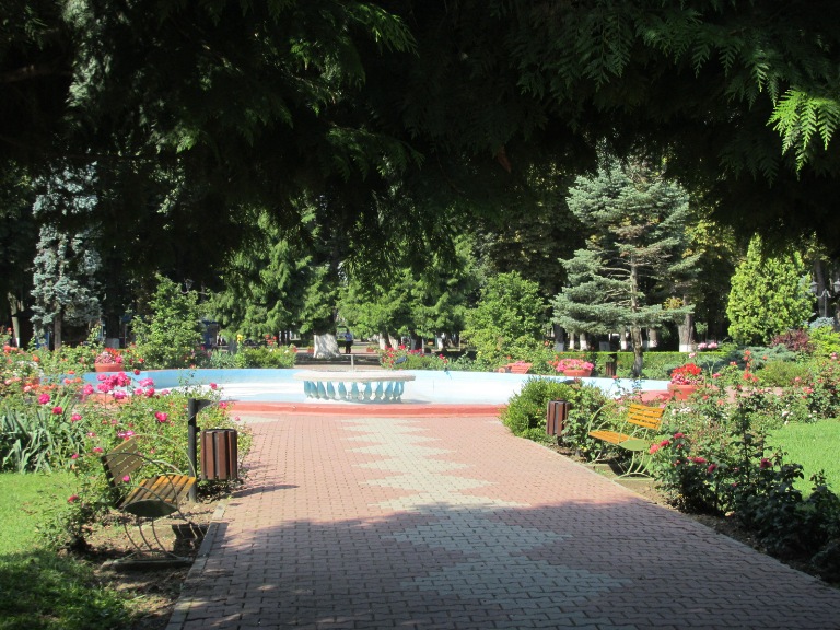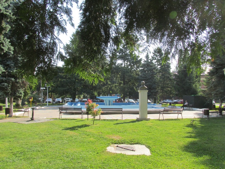 La intersecția dintre patru alei se află o fântână arteziană.