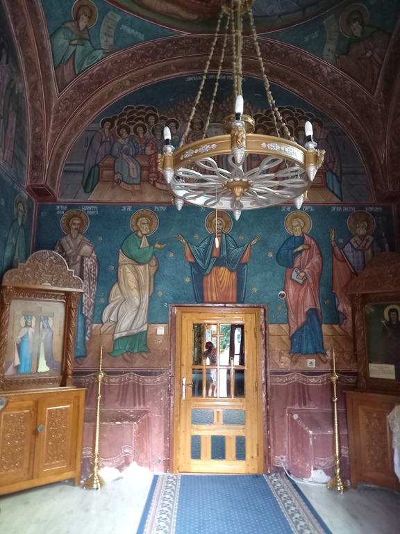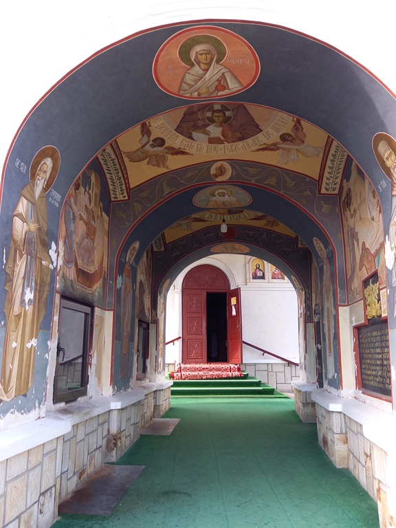 După ce am parcat mașina pe un spațiu larg, pietruit, am intrat printr-un mic coridor unde, lateral, se intra în micul Paraclis „Sf. Nicolae”.