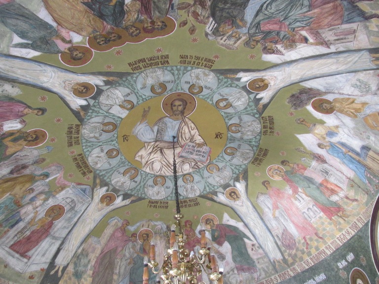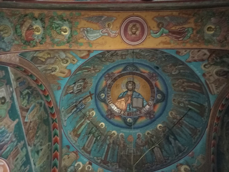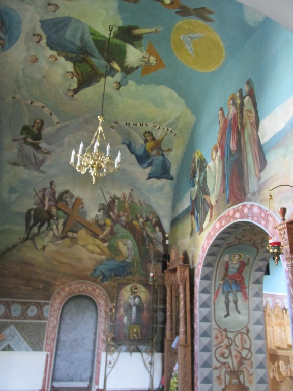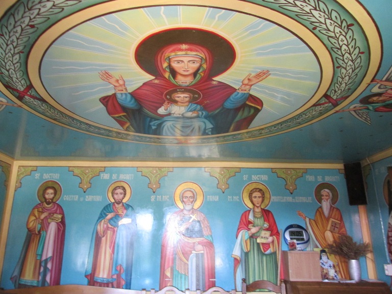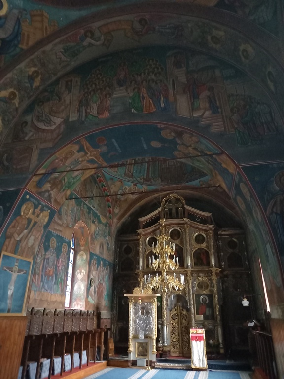 Interiorul a fost pictat cu scene și personaje biblice.