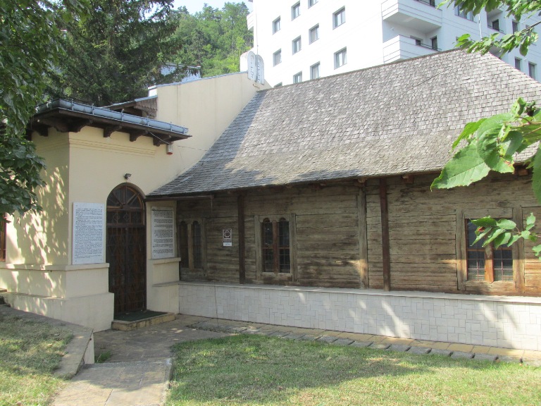Pe o străduță laterală, la o distanță neconvențională de biserică, se află Sinagoga de lemn Baal Șem Tov, construită în 1766, de Voievodul Al. Ioan Ghica, pe locul alteia mai vechi (1497). A fost numită după întemeietorul Hadismului despre care, pe o placă postată la intrarea în clădire, scrie că „s-a rugat în sinagoga veche atunci când s-a stabilit în Valea Jidovului”. Clădirea din bârne de lemn, pe o temelie de piatră, înaltă de 5 metri, a fost creată cu o parte la subsol, unde se coboară pe niște trepte. În interior s-au păstrat Urna Sfântă (1835), o perdea cu 7 triunghiuri și o inscripție în ebraică (1767). În 1826 a suferit reparații capitale și în decursul timpului mai multe recondiționări, ultima fiind în perioada 2007-2009 când lemnul distrus a fost înlocuit, din clădirea veche păstrându-se doar cupola și pereții laterali.