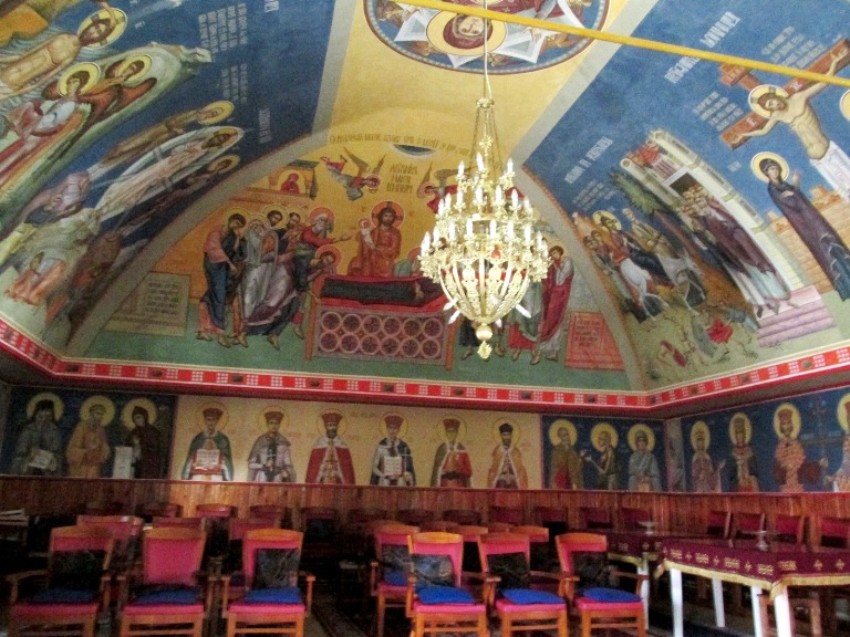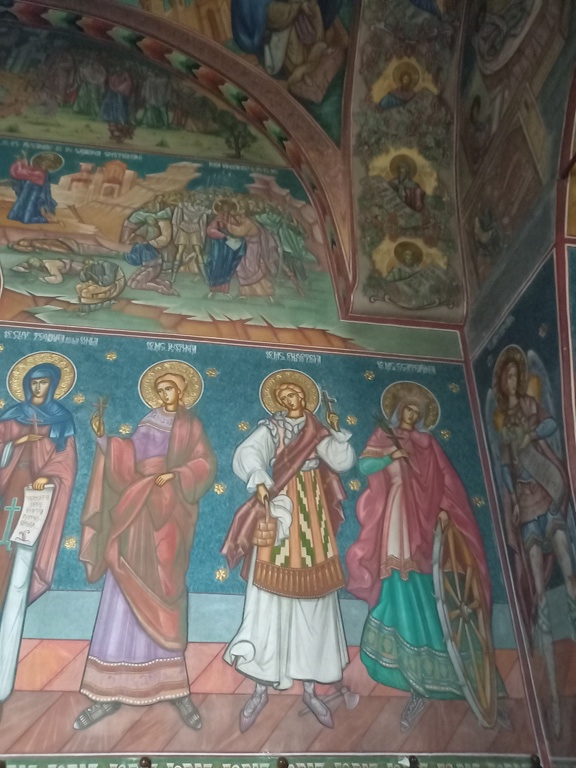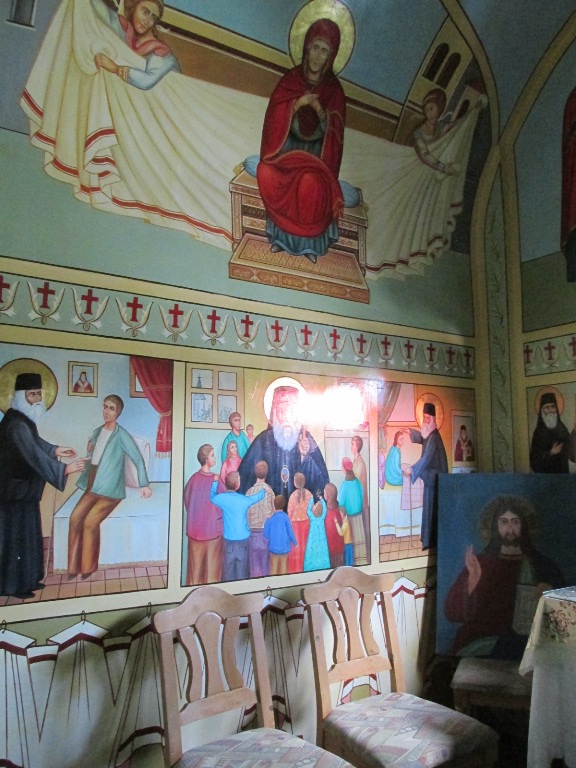 Picturile din interiorul lui etalează scene din viața sfântului și unele dintre minunile făcute de el.