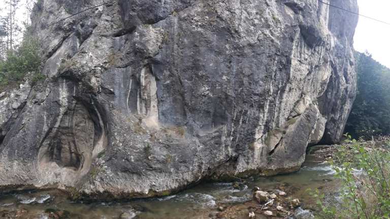 Pe fațada clopotniței, într-o firidă mică, am văzut icoana Maicii Domnului, efectuată în mozaic.