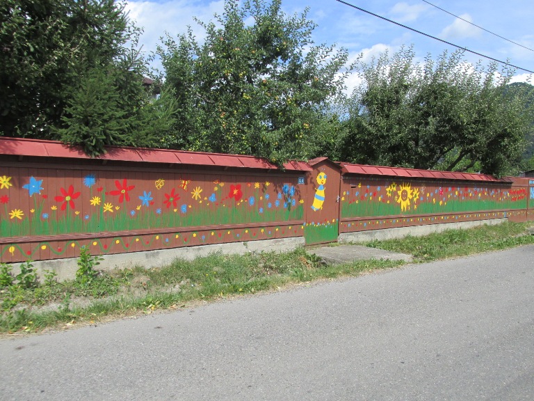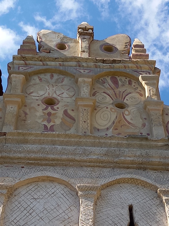 La exterior zidul de sud a fost decorat cu picturi, reprezentând motive florale.