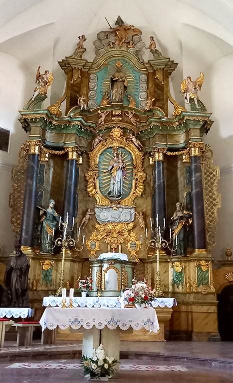 Catapeteasma, sculptată din lemn de păr sălbatic, a fost decorată cu icoane pictate de măicuțe. În biserică se păstrează o parte din moaștele Sf. Ierarh Nicolae.
