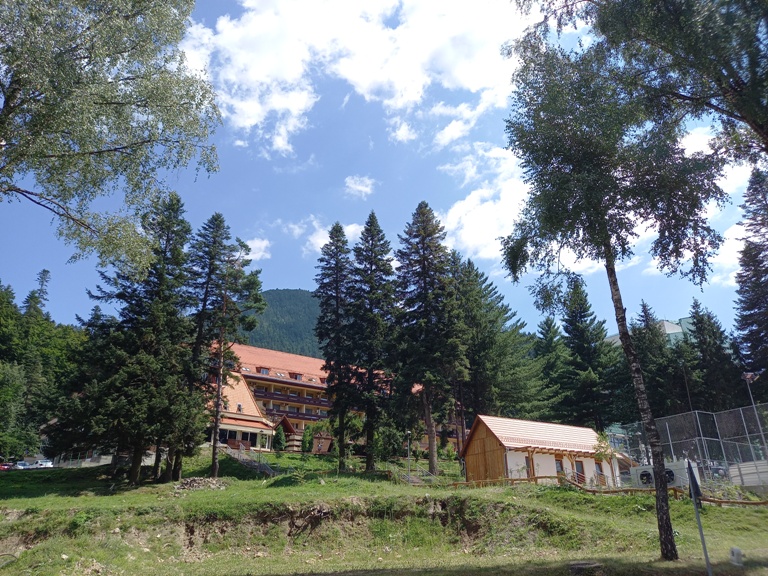 Deși a existat un drum, azi situat pe proprietate privată și închis circulației, pentru a ajunge la Băile Tușnad a trebuit să mă întorc, să rulez spre vest, apoi spre nord. În total 25 kilometri și am ajuns în orașul cu cel mai mic număr de locuitori din România, situat în partea sudică a Depresiunii Ciucului, pe versantul vestic al masivului Ciomatu.