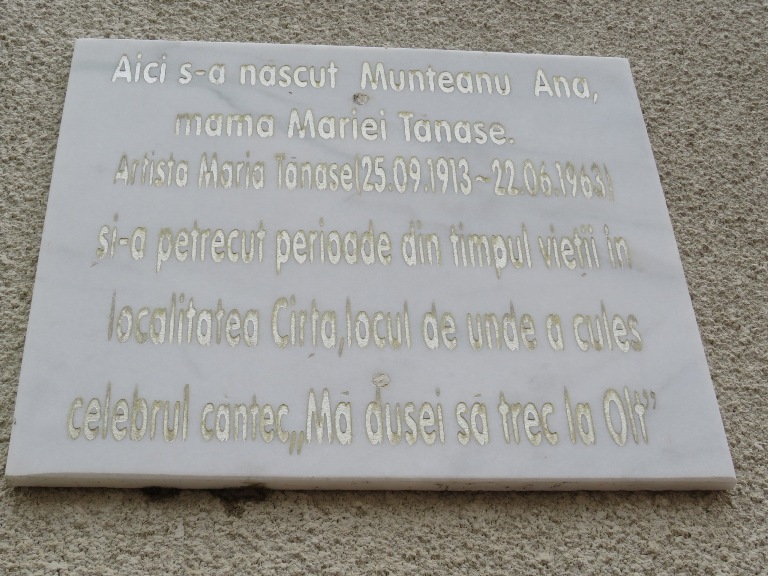 Pe strada principală se află fosta casă a bunicilor renumitei cântărețe de muzică populară Maria Tănase (1913-1963), mama ei fiind născută în localitate, în care a locuit și Maria, în unele perioade din viață, când a cules cântece din zonă. Pe casa, azi privată, la 100 de ani de la nașterea cântăreței a fost postată o placă comemorativă (2013).