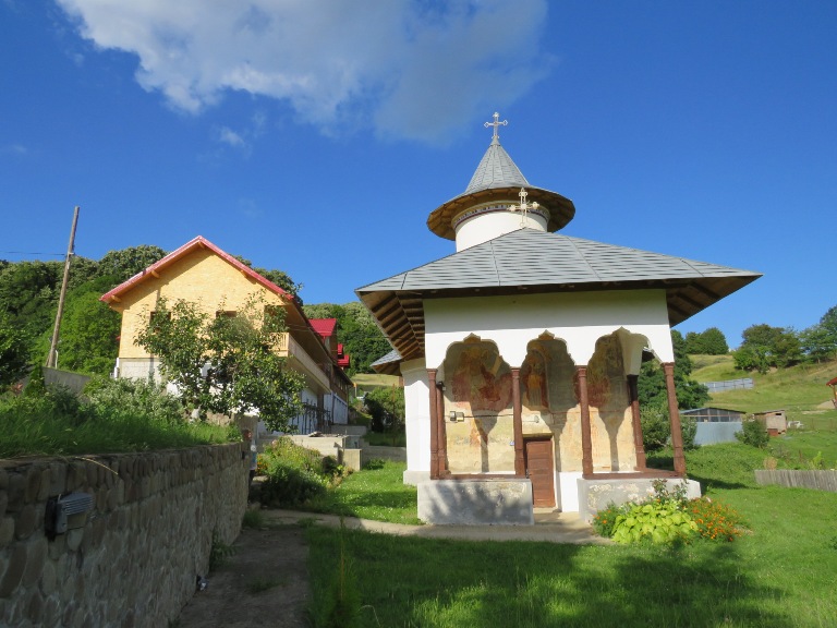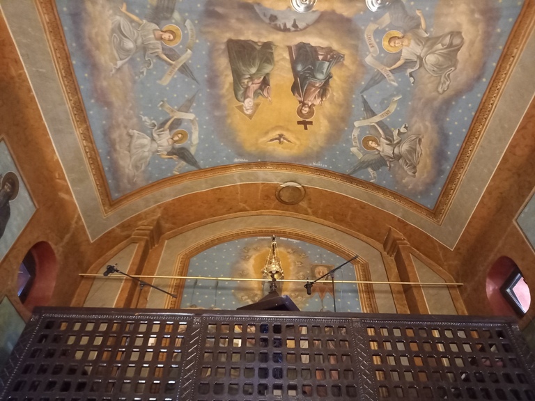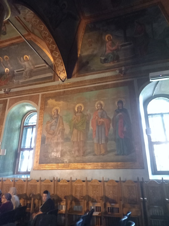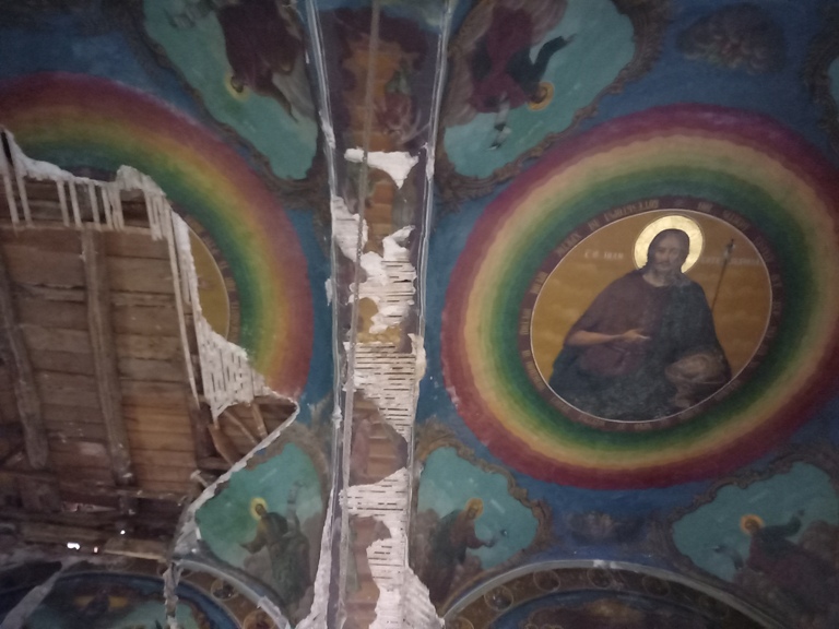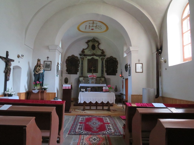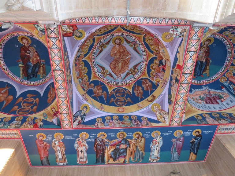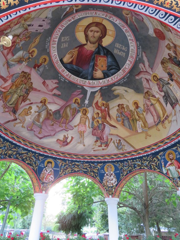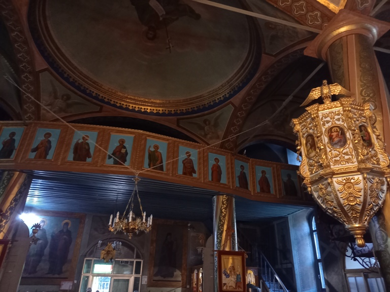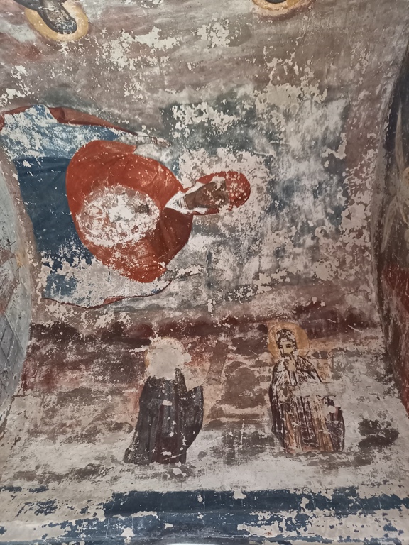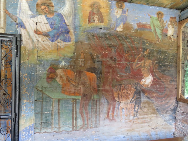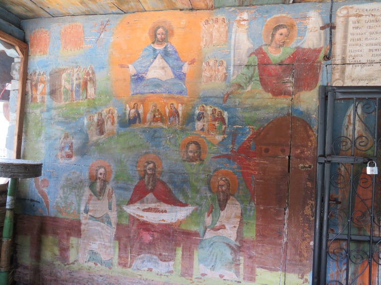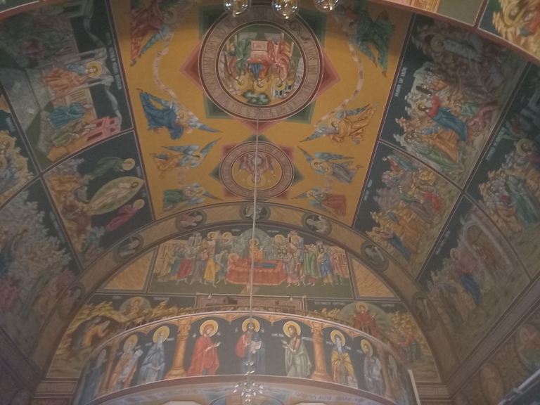 Interiorul a fost pictat în frescă (2008-2009), prezentând scene și personaje biblice.