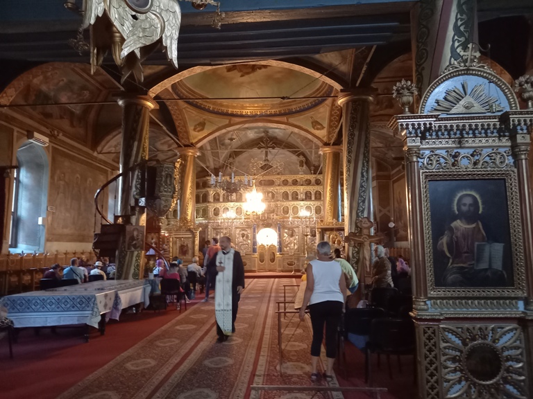 Deși izbucnise Primul Război Mondial (1914-1918), în 1915 interiorul bisericii a fost pictat în ulei, prezentând scene și personaje biblice și amvonul a fost sculptat în stil baroc, cu ornamente reprezentând vița-de-vie, flori, struguri, etc.