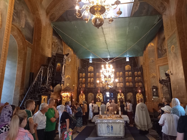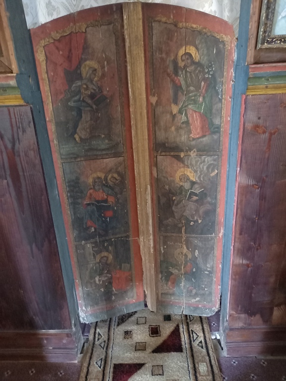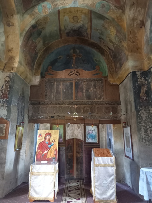 E structurată în pronaos, naos și altar.