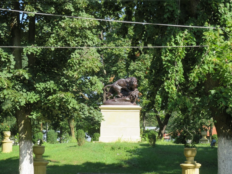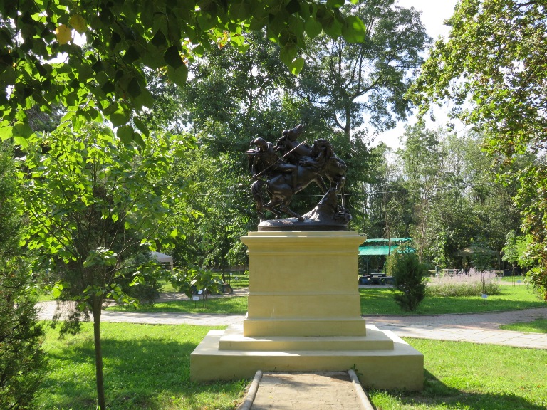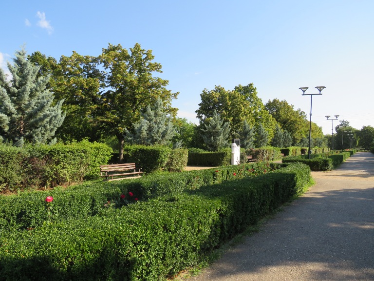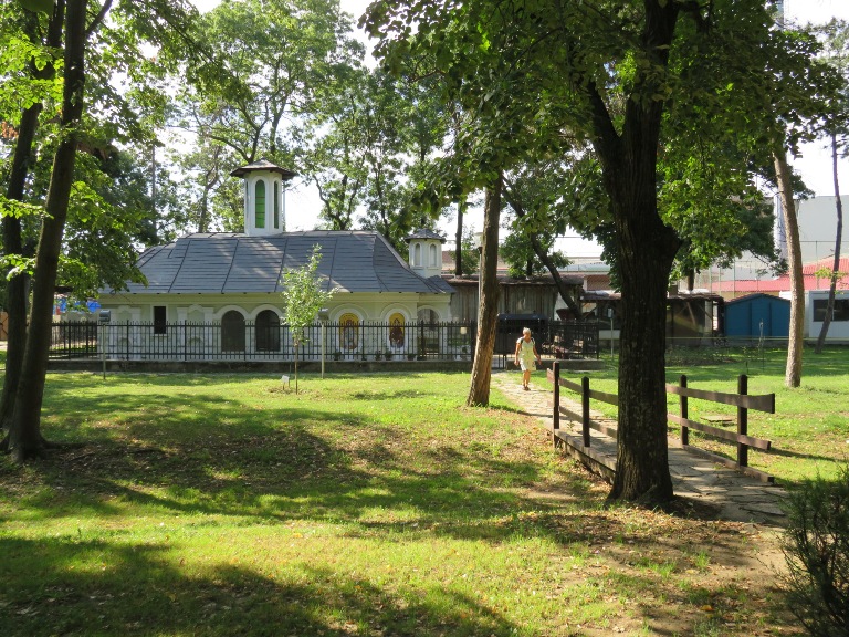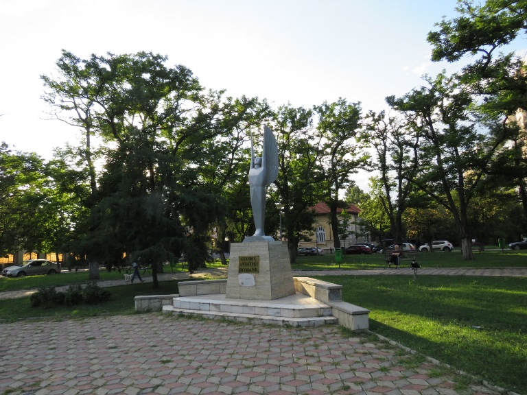 În fața bisericii este amenajat Parcul Bogdan Petriceicu Hașdeu, în care central este postată statuia „Glorie Aviației Române”, pe care l-am traversat, îndreptându-mă spre centrul orașului.