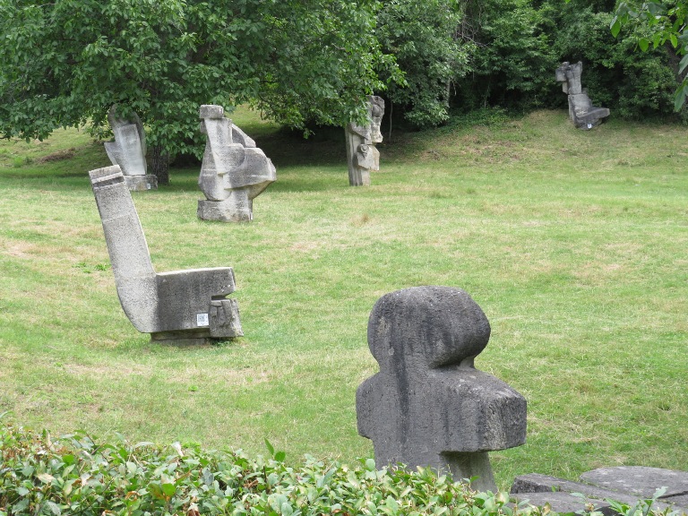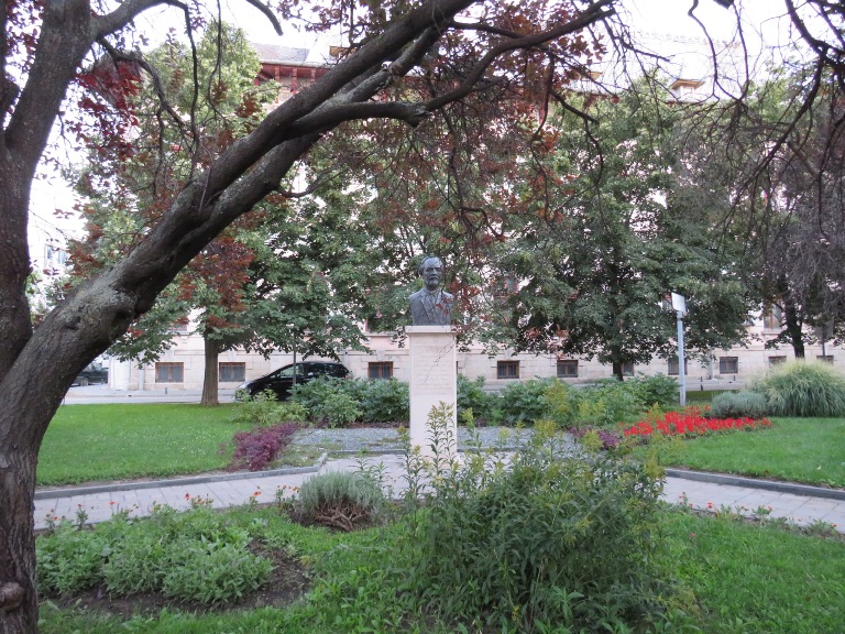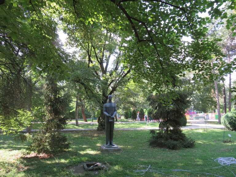 Într-un parc din spatele Primăriei am văzut statuia Vasile Voiculescu, scriitor și medic român (1884-1963), dezvelită în 2018.