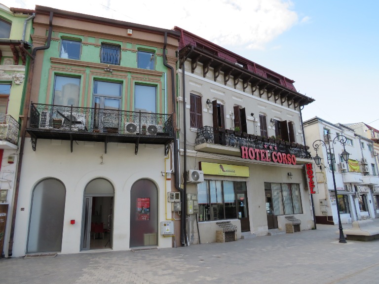 Fosta stradă a Târgului (strada Cuza Vodă din Centrul Istoric al orașului) a fost folosită pentru vânzarea produselor. Azi la parterul clădirilor, construite în secolele XIX-XX, funcționează diverse magazine, firme, restaurante, unele cu terase, etc. În una din acele clădiri, monument istoric (1880), despre care se presupune că ar fi fost un han, alții cred că un local cu jocuri de noroc, sau un bordel, după ce a fost restaurată, s-a amenajat Hotelul Corso (2002), în care m-am cazat și eu.