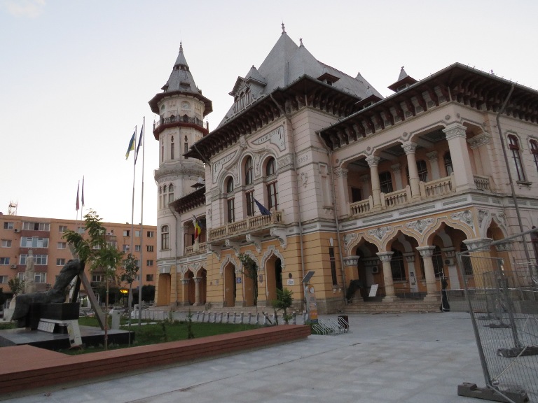 Palatul Comunal, construit pe locul fostei grădini publice (1899-1903), a fost inaugurat în prezența regelui Carol I și a Principelui Ferdinand. Clădirea din cărămidă arsă, pe soclu de piatră, cu parter și un etaj, a fost dotată cu un turn cu ceas. În interior, sala de recepții, decorată cu ornamente în stil venețian, era folosită pentru ședințe, concerte, baluri, etc.