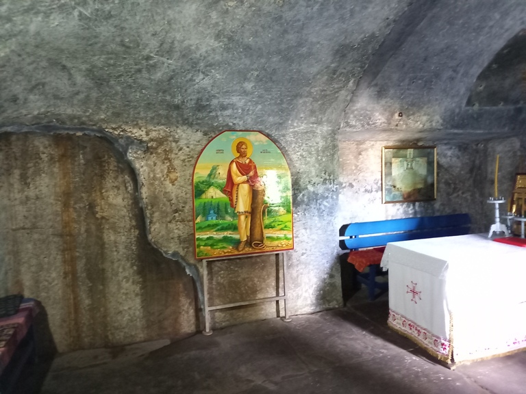 Adusă de la Mânăstirea Brazi (2011), în ea se află racla cu veștmântul în care au fost îmbrăcate moaștele Sf. Ierarh Mc. Teodosie.
